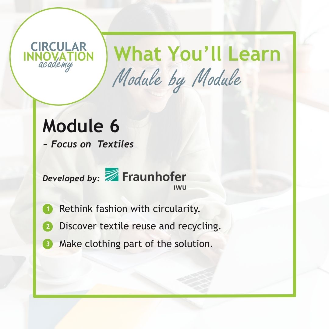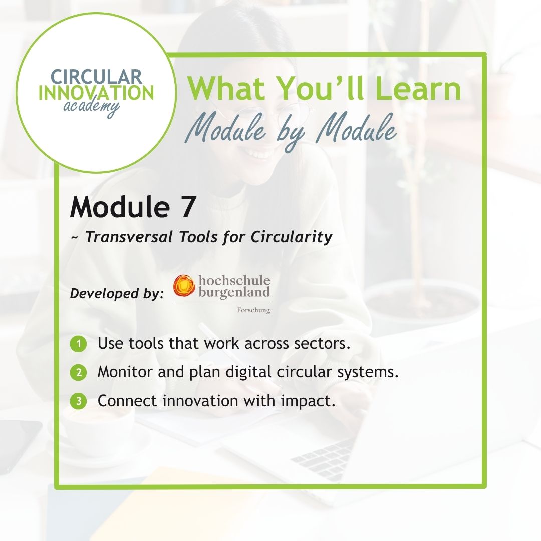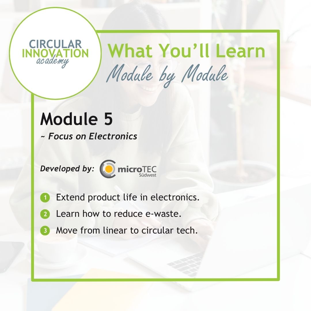 Circular Innovation Academy je kombinirana online platforma za učenje na engleskom jeziku osmišljena kako bi pružila praktična, sektorski specifična znanja o kružnom gospodarstvu kroz osam modula. Program povezuje tehničke i strateške aspekte s naglaskom na digitalne alate, pametnu proizvodnju i primijenjene inovacije.